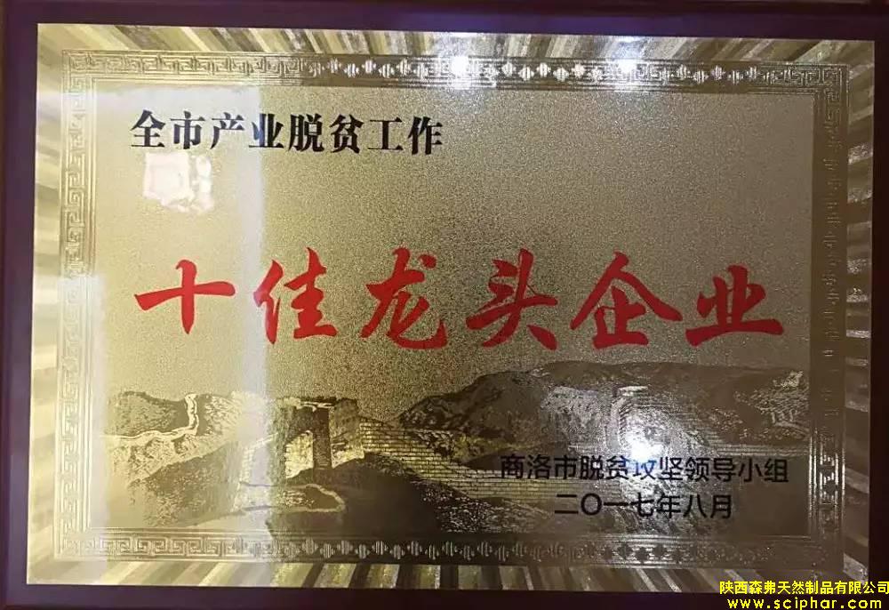 2017年9月1日,商洛市產(chǎn)業(yè)精準(zhǔn)脫貧現(xiàn)場會暨產(chǎn)業(yè)扶貧推進月動員會在商南召開。會上,表彰了在全市產(chǎn)業(yè)脫貧工作中,做出突出貢獻的龍頭企業(yè)、現(xiàn)代農(nóng)業(yè)園區(qū)和農(nóng)民合作社。陜西森弗天然制品有限公司被評為全市產(chǎn)業(yè)脫貧龍頭企業(yè)。