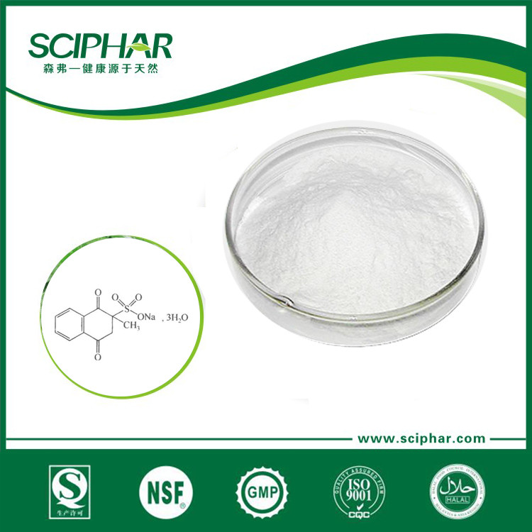 品牌:  SCIPHAR(森弗) 主要成分 :  維生素K3,白色或類白色結(jié)晶粉末,吸濕后結(jié)塊。 功效說明:  維生素K3 99%